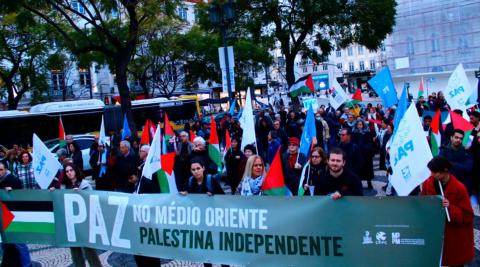 As part of the solidarity campaign with the Palestinian people, which will run until November 29th, with demonstrations in Lisbon and Porto, the organizing organizations once again demanded an end to Israel's crimes, the bombings of Gaza City and neighboring countries, the recognition of the State of Palestine, and unrestricted access for humanitarian aid!